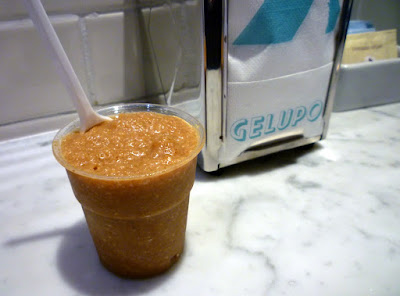 Speaking of ice crystals, one place they are very welcome is in a granita. Gelupo is known for it's range of seasonal granitas and I was determined to leave room to sample them. First up was the burnt almond: this was intriguing as it managed to be both creamy and icy at the same. With a subtle ameretti biscuit flavour and a gentle nuttiness this was definitely one to try.