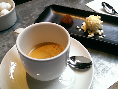 There was also espresso and, very good, chocolate truffles for the the more adult amongst us, although I think the Ewing felt a little pang of jealousy when she saw the impressive looking chocolate malt desert make its way to an adjacent table (looked amazing-had serious pudding envy - TE).