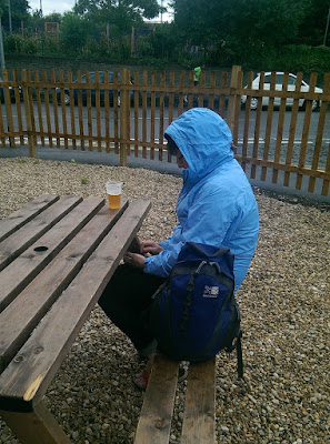 It may have been a drab day but the pop of colour from the gazebo at the front - that the weather-hardened drinkers had already begun to congregate under - standing out against the grey roof and the even greyer sky was a cheering sight. And by the time we left a multicolored tangle of bikes had also been propped up against the wooden fence outside. A very Bristolian scene.